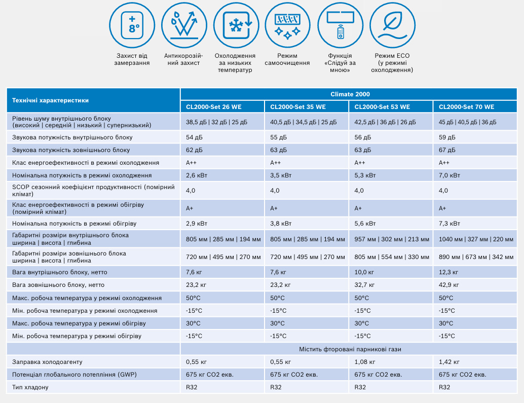 Інверторний кондиціонер BOSCH Climate 2000 модель 2.6 кВт підходить для охолодження та нагріву приміщень площа яких складає до 25 м2. Даний кондиціонер БОШ має клас енергоспоживання А++ для охолодження і А+ для обігріву. Інверторна спліт система складається з внутрішнього та зовнішнього блоку. Сезонний коефіцієнт продуктивності SCOP -4. Максимальна робоча температура в режимі охолодження +50 С, в режимі обігріву -15С. Тип хладогенту який встановлений в інвертрному кондиціонері - R32. Максимальна споживча потужність складає 2150 Вт. Замовити кондиціонер БОШ можливо в нашому інтернет магазині.