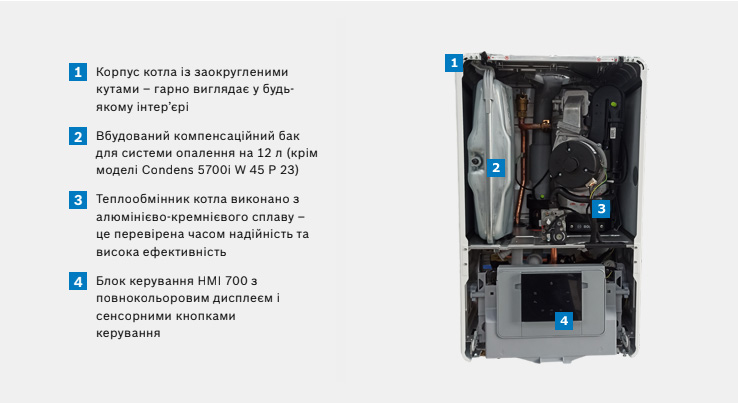 контур, бак непрямого котла є опцією). Котел газовий конденсаційний бош має
