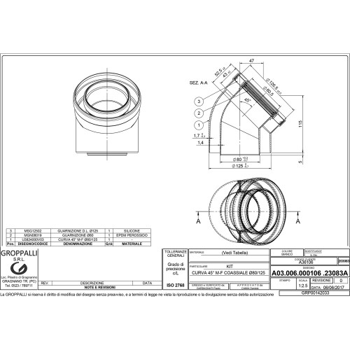 Коліно коаксіальне GROPPALLI для конденсаційних котлів, розмір 80/125 - 45 . Замовити та підібрати коаксіальний димохід можливо у менеджерів нашого інтернет магазину.